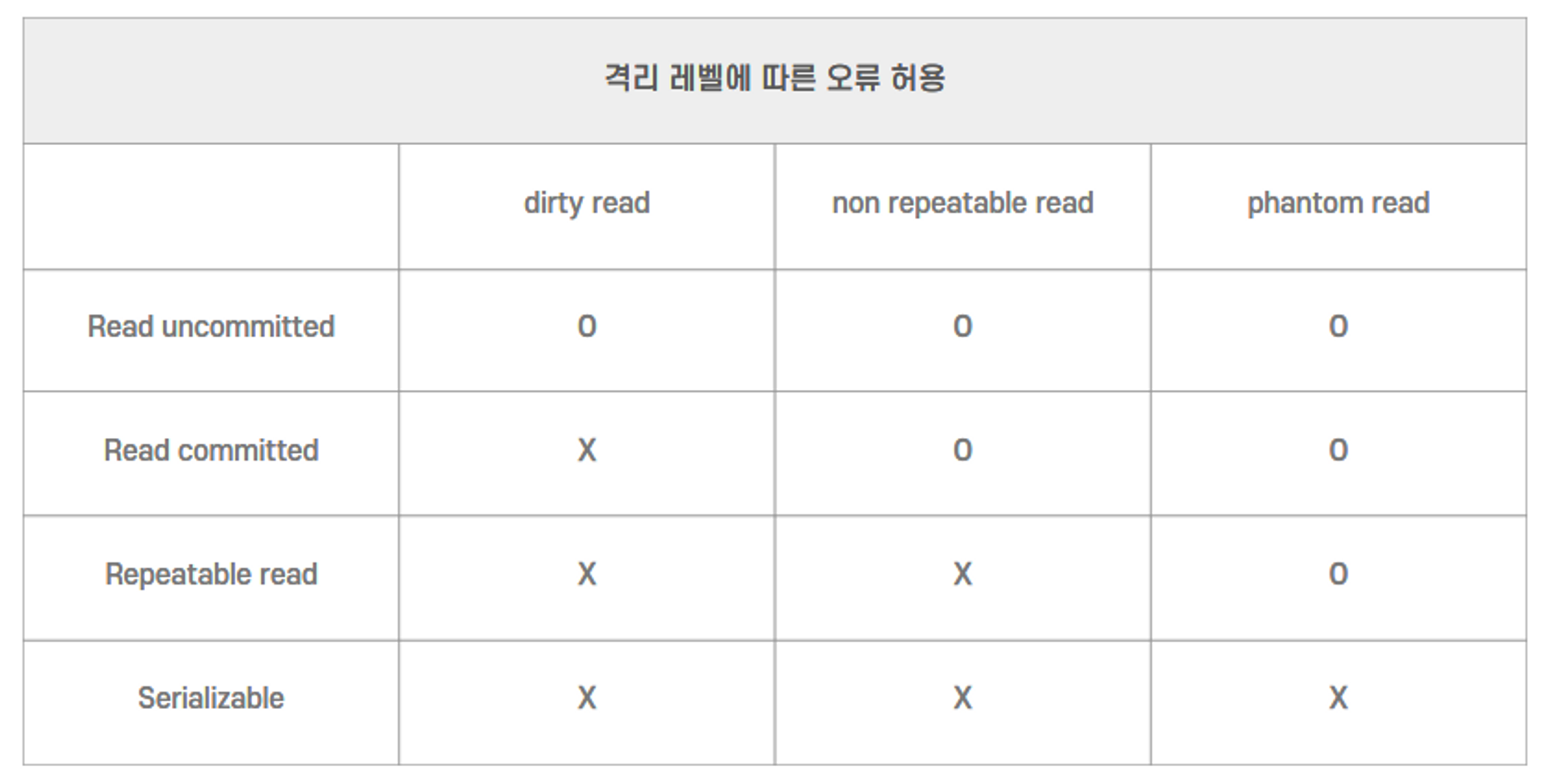 SQL νμ€μμ μ΄λ₯Ό μ΄λκΉμ§ νμ©ν κ²μΈμ§μ λν 격리 λ¨κ³λ₯Ό μ§μ ν΄λμλ€.