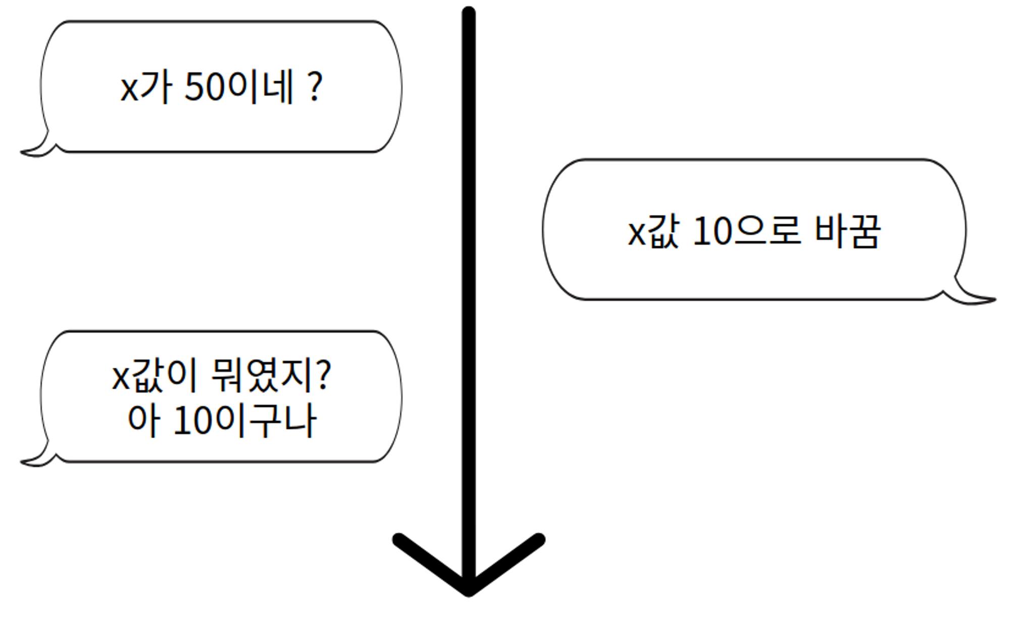 κ·Έ μ¬μ΄μ νΈλμμ Bκ° xμ κ°μ 10μΌλ‘ λ³κ²½νκ³ , λ€μ νΈλμμ Aκ° xλ₯Ό μ½μμ λλ xμ κ°μ 10μ΄ λμ¨λ€.
