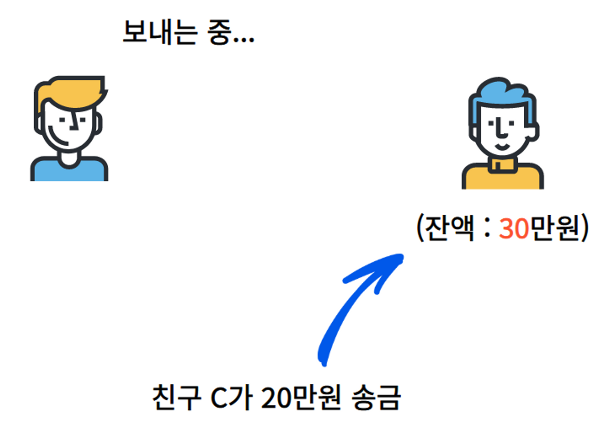 2. μΉκ΅¬ Bμ κ³μ’μ 20λ§μμ μΆκ°νλ€.