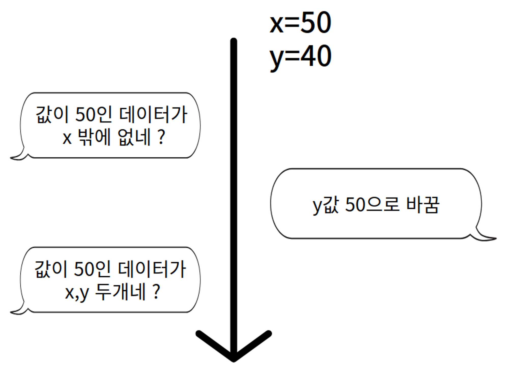 νΈλμμ Aλ xλ₯Ό λ³νμν€κ³ , νΈλμμ Bλ yλ₯Ό λ³νμν¨λ€.