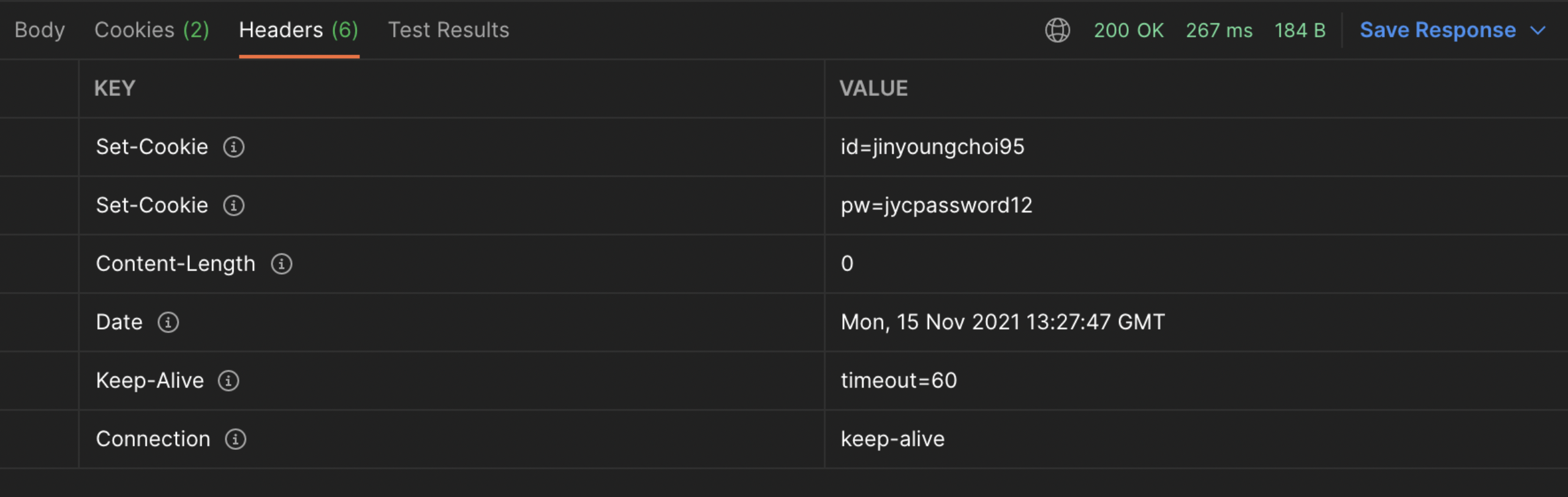 ํด๋ผ์ด์ธํธ์์๋ ๋ก๊ทธ์ธ์ด ํ์ํ ์์ฒญ์ ํ ๋๋ง๋ค ๋ค์๊ณผ ๊ฐ์ด ์ฟ ํค์ id, pw ์ ๋ณด๋ฅผ ๋ด์์ ์ ์กํ๋ค.