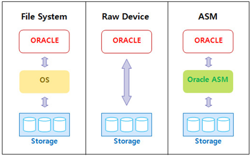 ์ค๋ผํด์ด ํ์ผ์ ์ ์ฅํ๋ ๋ฐฉ์์ ์ฌ๋ฌ ๊ฐ์ง๊ฐ ์๋ค. ๋ํ์ ์ผ๋ก ํ์ผ ์์คํ ๋ฐฉ์, Raw Device ๋ฐฉ์, Oracle ASM ์ด๋ผ๋ ๋ฐฉ์์ด ์๋๋ฐ, ASM ๋ฐฉ์์ ๋ค๋ฅธ ๊ฒ๊ณผ ๋๋นํด ์ฌ๋ฌ ์ฅ์ ์ ๊ฐ์ง๊ณ ์๊ธฐ์ ํ์ ์์ ๋ง์ด ์ฌ์ฉํ๊ณ ์๋ค.